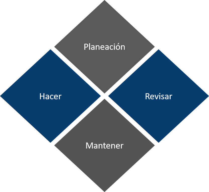 Mantener: Con base en los resultados de la revisión, se implementan mejoras, acciones correctivas, acciones preventivas y se comprueba la eficacia de las acciones.